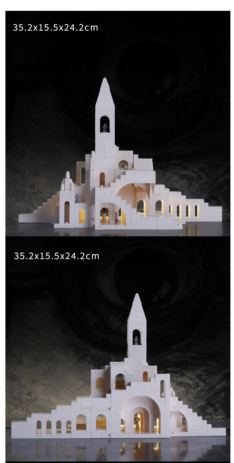 With beige as the main color, it is matched with exquisite arched door and window design to restore the architectural aesthetics of European castles. The details are full of ingenuity, such as the small tower spire and realistic wall texture. After the construction is completed, it is highly ornamental and is very suitable as a toy or a home decoration.