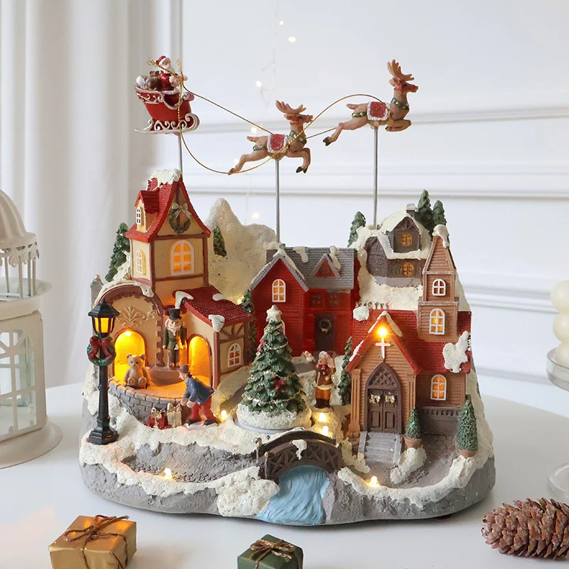 This European-style miniature Christmas desktop ornament perfectly recreates the dreamlike scene of a Christmas town. Red-roofed cottages, quaint churches, and towering Christmas trees blanket the landscape in snow, bringing the Nordic Christmas fairytale world to life.