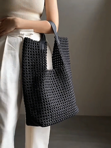 This tote is very roomy, so it's perfect for the days when you need to carry more. Handwoven from supple strips of leather, it's unlined in a traditional weaving technique and keeps small items secure and easy to find. Black Leather (Cow) - Open Top - Weighs approximately 1.8 lbs / 0.8 kg