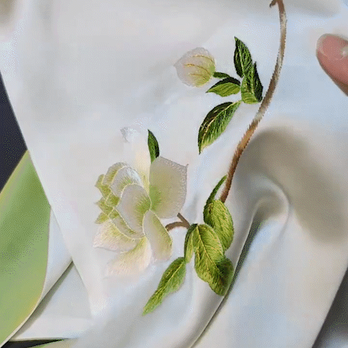 This is a 100% silk scarf with Suzhou embroidery, a traditional Chinese art form that dates back to more than 2000 years ago. Suzhou embroidery is one of the four famous embroidery styles in China, known for its exquisite patterns, elegant colors and lively stitches.