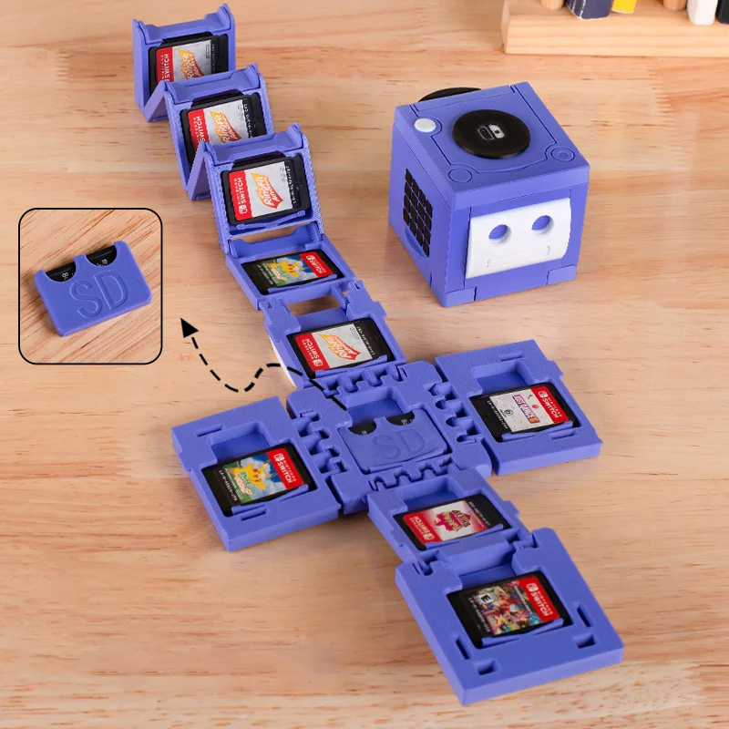 Folding design, amazing capacity: The innovative folding structure holds 12 Switch game cartridges and 2 SD cards when unfolded, and folds into a compact cube, significantly saving desktop space and offering the perfect balance of portability and storage capacity.
