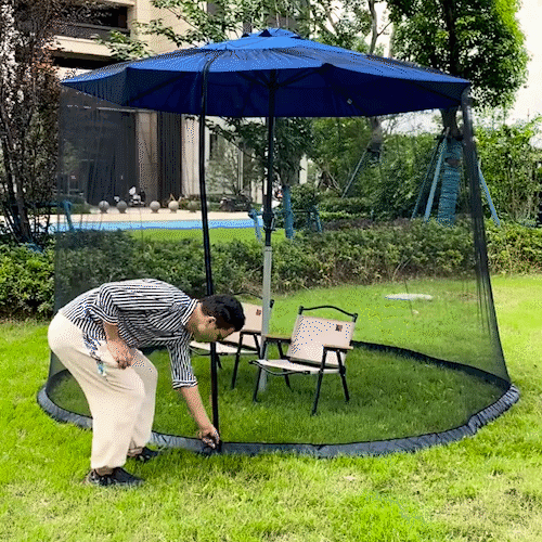Fine Mesh: The fine mesh of the Patio Umbrella Mosquito Net keeps all the tiny "guests" out while you play safely inside, the zipper entry makes it easy for you to get in and out, with zippers on both sides.